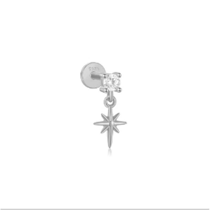 CANNER 1PC Four Pointed Star Moon Tassel Lotus Cartilage Spiral Puncture 925 Sterling Silver Stud Earring For Women Ins Earring