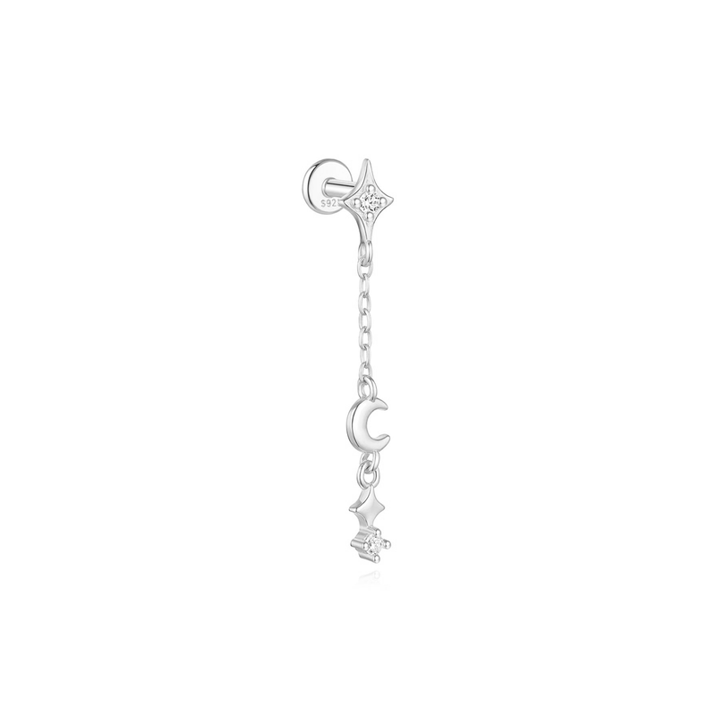 CANNER 1PC Four Pointed Star Moon Tassel Lotus Cartilage Spiral Puncture 925 Sterling Silver Stud Earring For Women Ins Earring