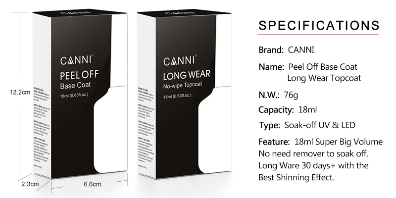 Canni 18ml Long Wear Diamond No Wipe Top Coat Big Volume PeelOff Base Coat Soak Off UV LED Gel Polish Nail Manicure Nail Varnish