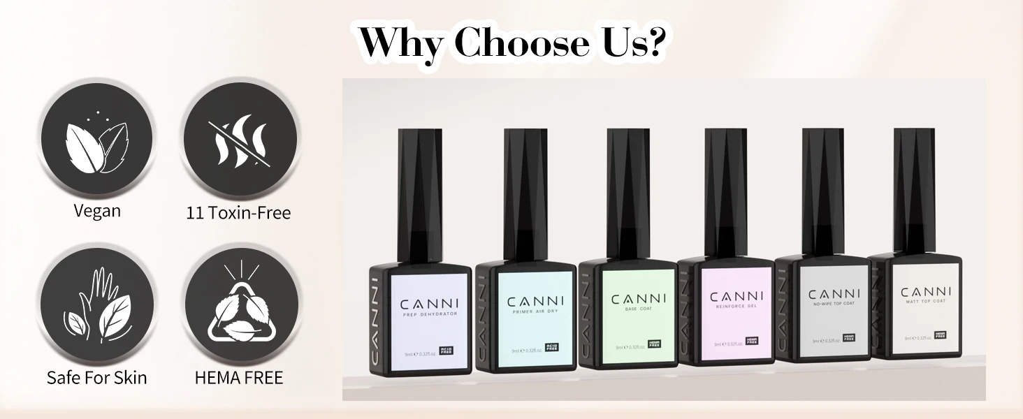 CANNI HEMA/TPO FREE 9ML Primer Base Coat Topcoat and Color Gel Polish Base Soak Off UV LED Fast Dry Nail Liquid Manicure Gel DIY