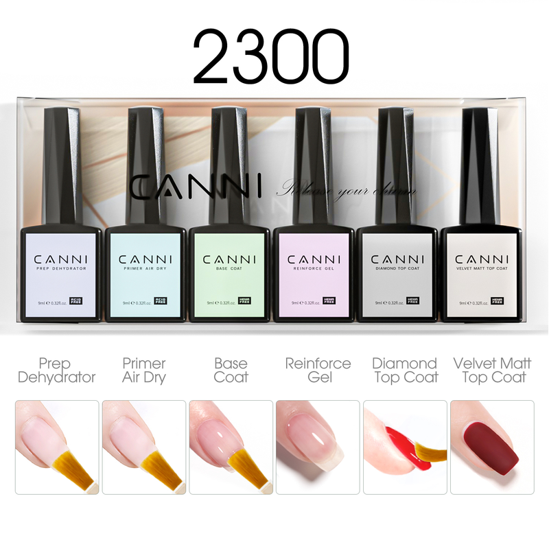6pcs*9ml Canni HEMA FREE dehydrator/primer/base coat/diamond top coat/matt top coat