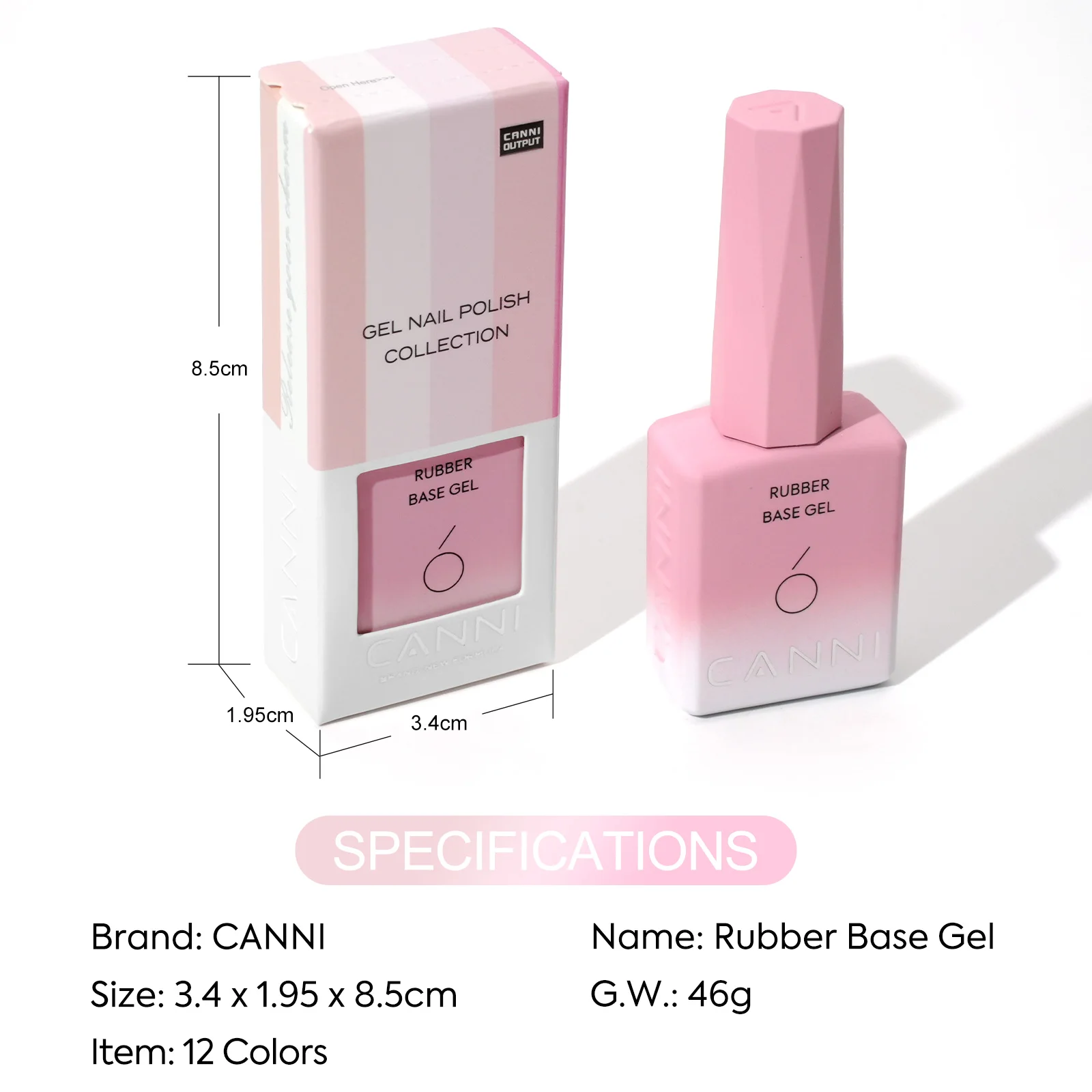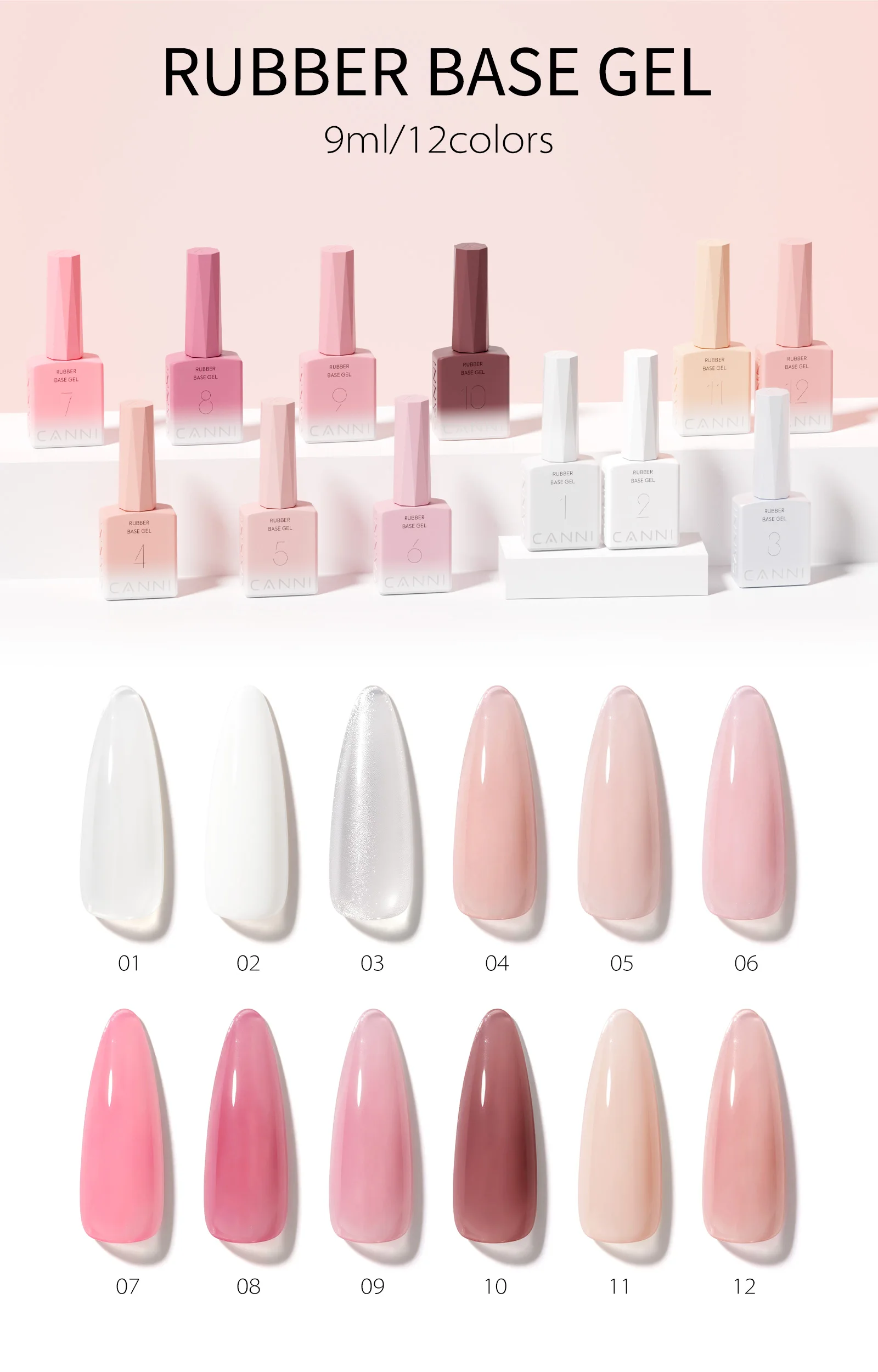 CANNI Rubber Base Gel 9ml 12 Colors TPO/HEMA FREE Soft Builder Base Soak Off UV LED Nail Gel Strengthening for Natural Manicure