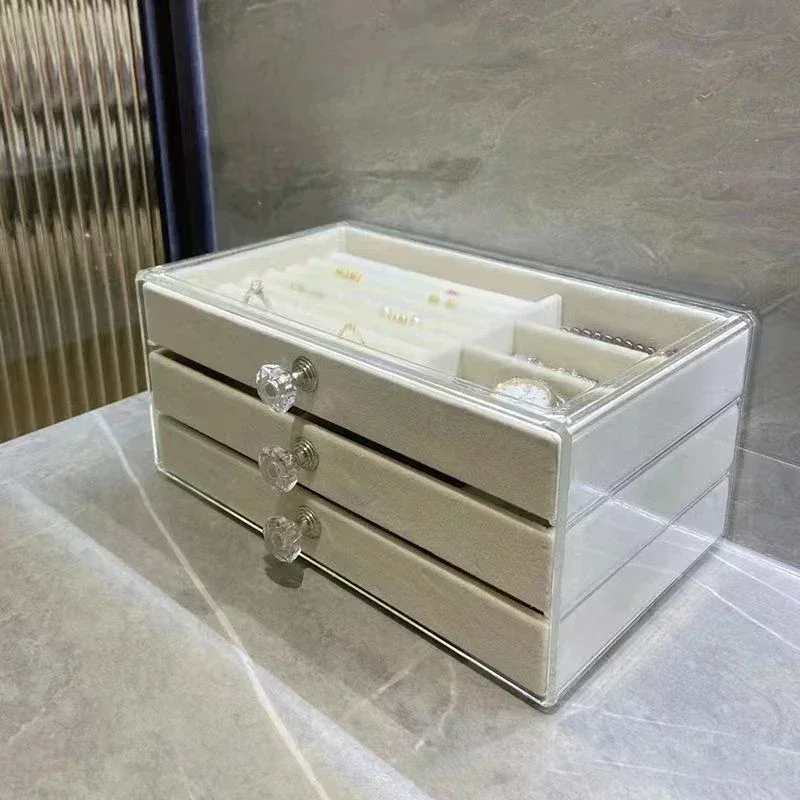 Capacity high-grade exquisite anti-oxidation three drawer desktop jewelry bracelet ring jewelry large storage box
