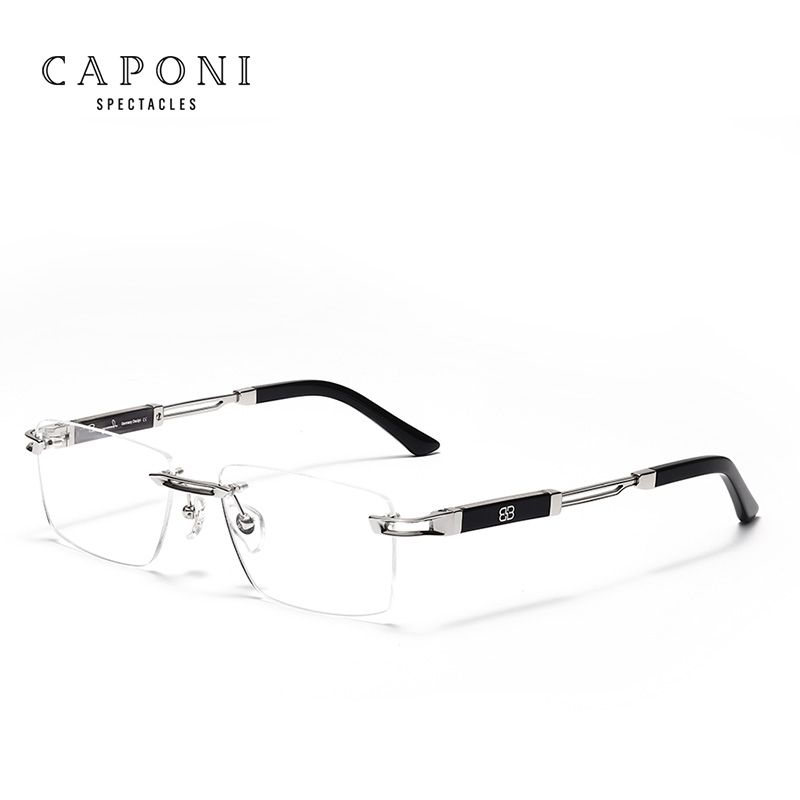 CAPONI Hot Rimless Men's Glasses Frame Luxury Business Pure Titanium Acetate Eyeglasses UV400 Brand Design New Spectacles J23026