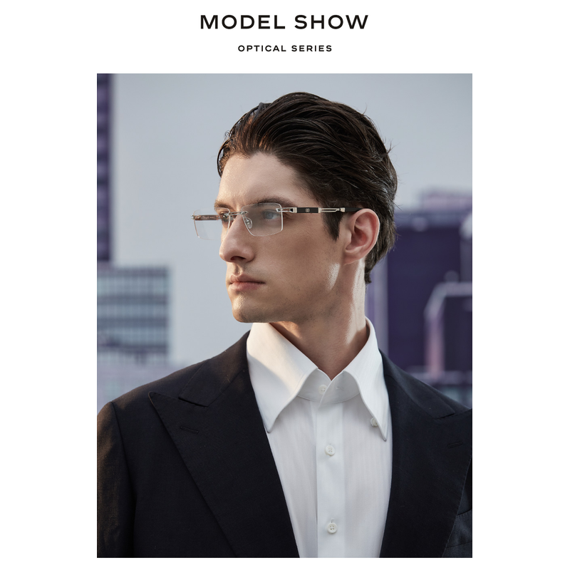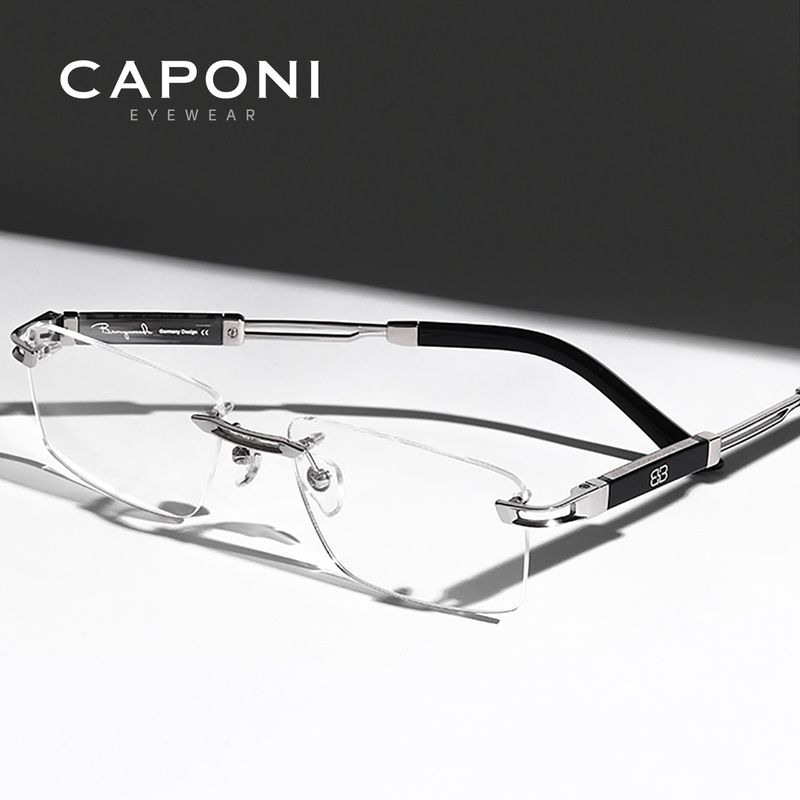 CAPONI Hot Rimless Men's Glasses Frame Luxury Business Pure Titanium Acetate Eyeglasses UV400 Brand Design New Spectacles J23026