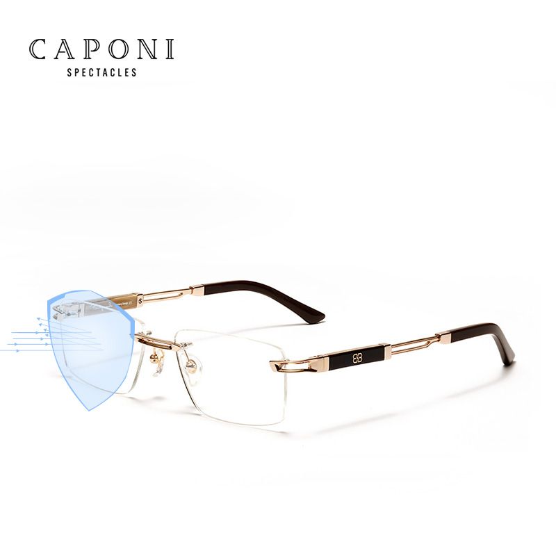 CAPONI Hot Rimless Men's Glasses Frame Luxury Business Pure Titanium Acetate Eyeglasses UV400 Brand Design New Spectacles J23026