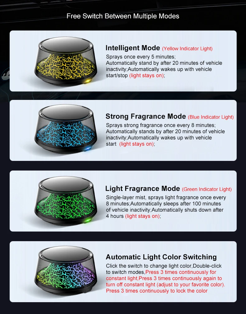 Car Air Freshener, AI-powered automatic electric diffuser with 9 ambient light modes,3-Custom-Blended Fragrances for Car/house