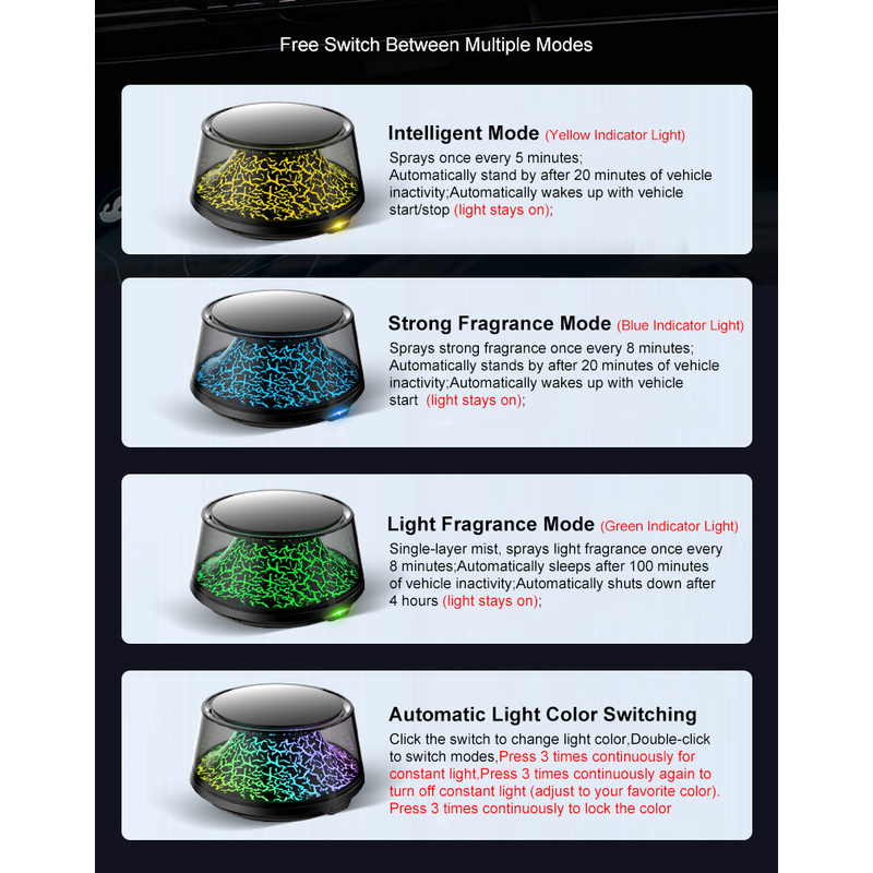 Car Air Freshener, AI-powered automatic electric diffuser with 9 ambient light modes,3-Custom-Blended Fragrances for Car/house