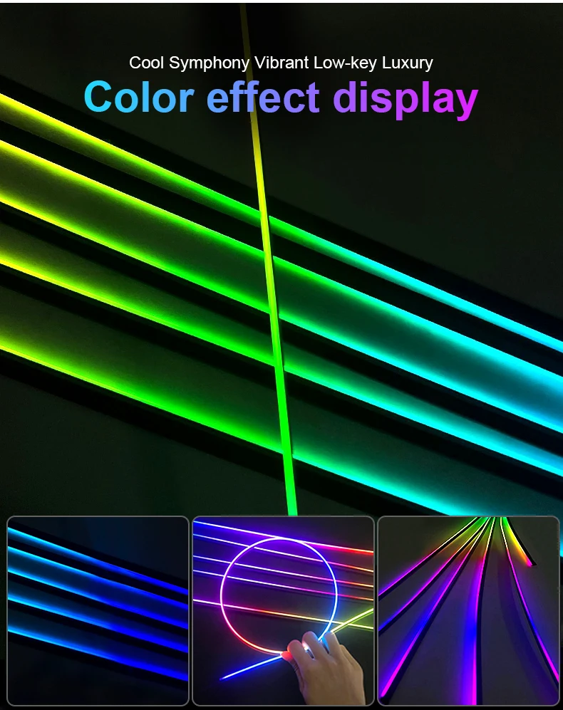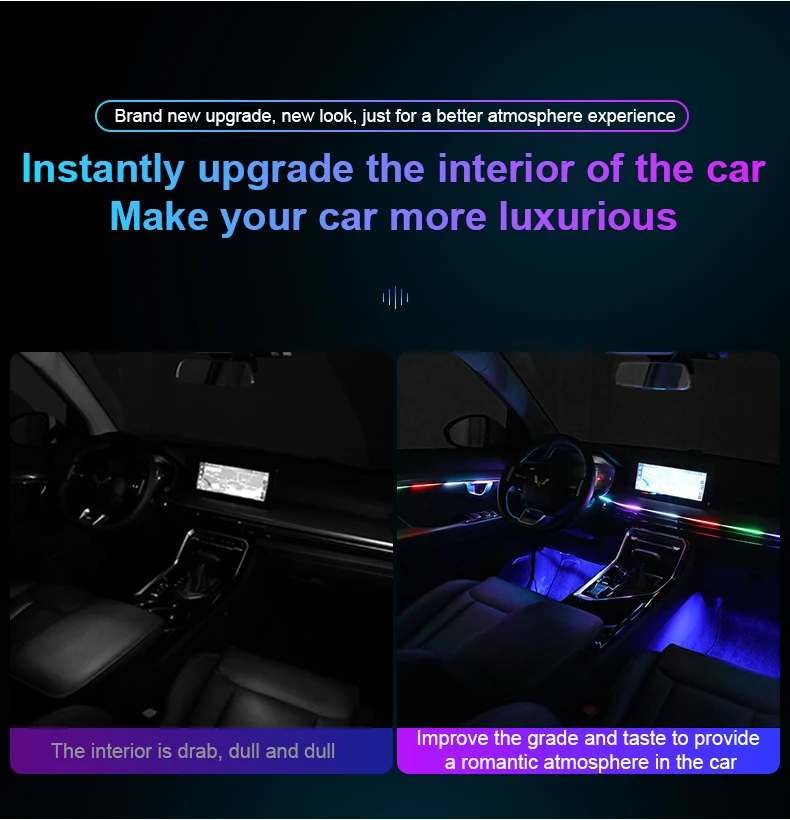 1) Active sound effects: The LED under the car's brightness system is equipped with sound sensors that allow the LED lights synchronized with musical rhythm. The LED light music strip follows the rhythm and adjusts the flicker to adapt to the strength of the sound.