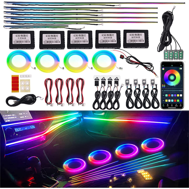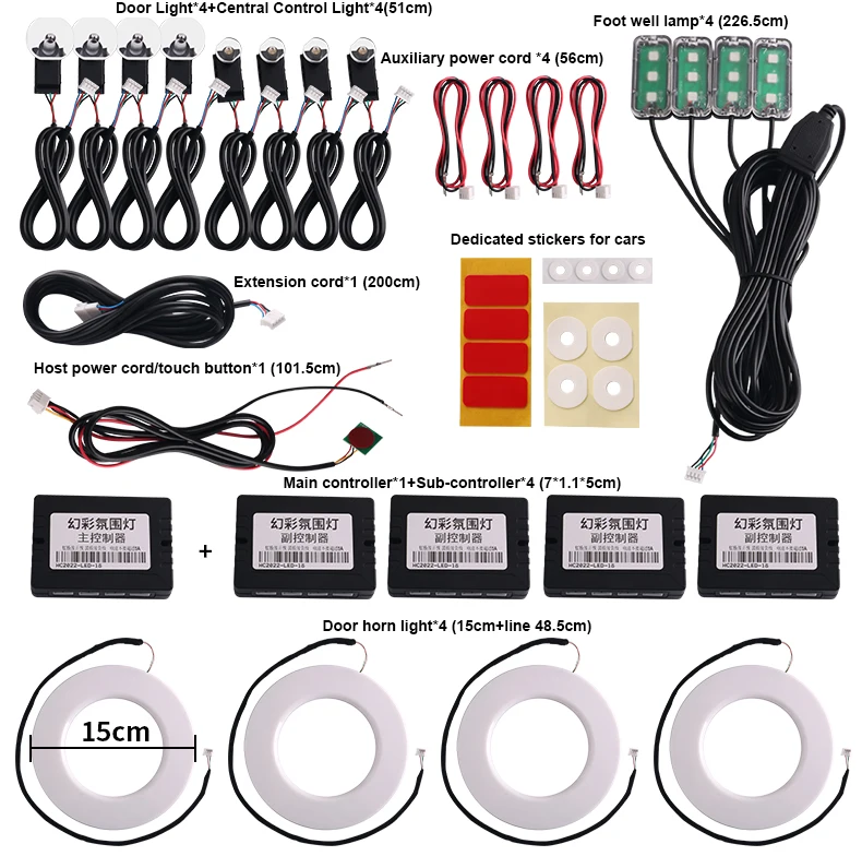 Item Type : 22 in 1 ( 6 Pcs LED Light Strip(110cm*1+75cm*4+35cm*1)+ 1 Main control box + 4 Sub control+ 4 Ambient foot lights + 4 Door bowl lights+ 4 Storage lights+4 horn lights)