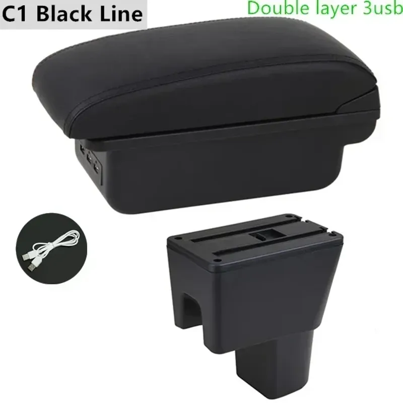 Car Armrest Box For Suzuki Celerio car armrest interior modification Storage Box for Celerio PU Leather USB LED Accessories
