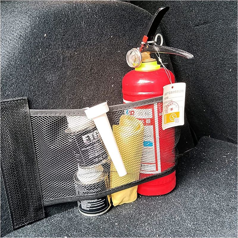 Car Back Rear Trunk Elastic Mesh Fixed Straps Car Interior Organizer Extinguisher Storage Net Seat Back Fixing Bag Car Accessory