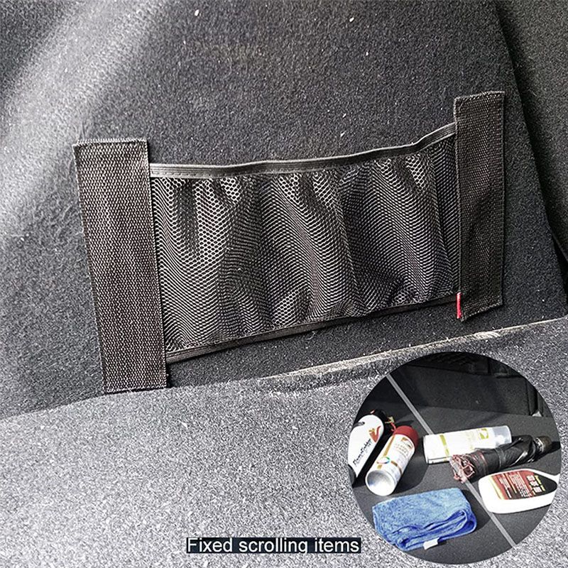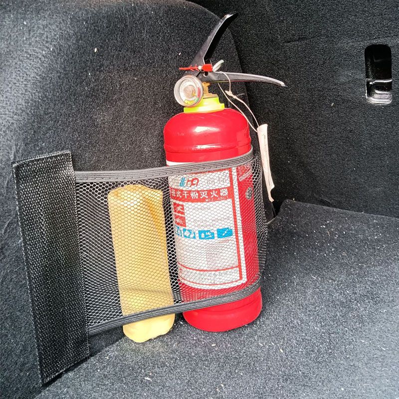 Multifunctional mesh bag, storage trunk, fixed and easy to roll items, fixed fire extinguisher.