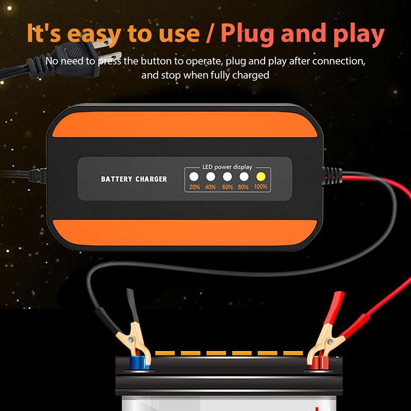 Car Battery Charger 12V Vehicle Pulse Charger Intelligent Battery Charging Tool For Car SUV Motorcycle ATV Truck Mower RV