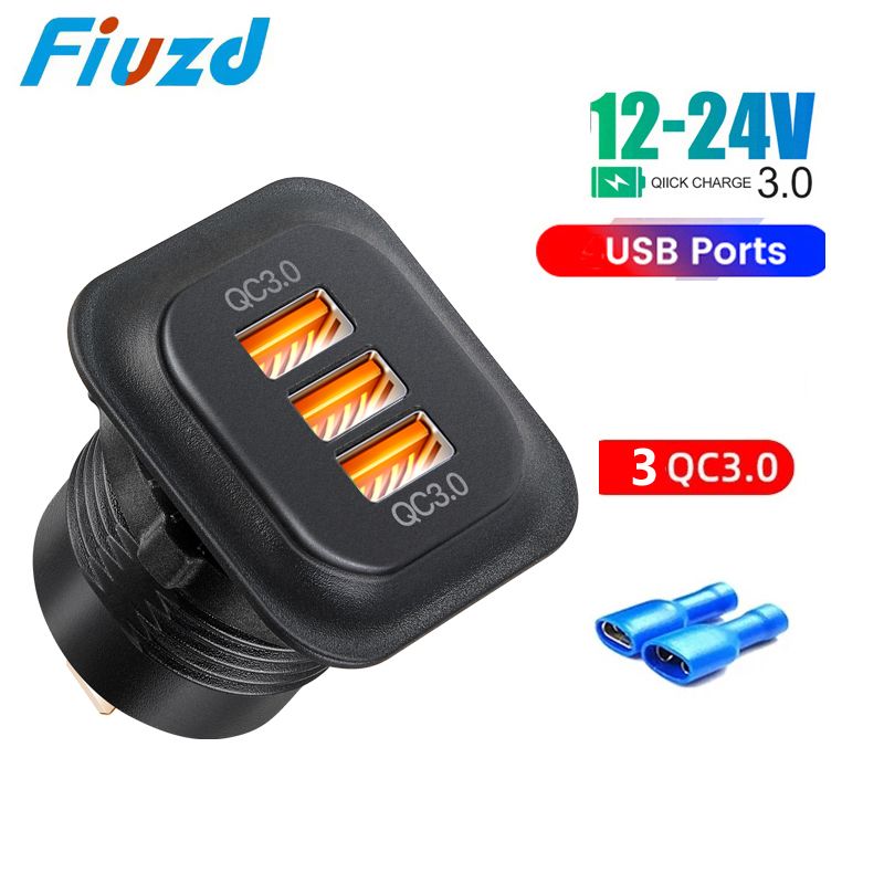 Car Charger Socket PD3.0 & QC3.0 Double USB C Ports with LED Fast Charging 12V/24V For Moto Adapter