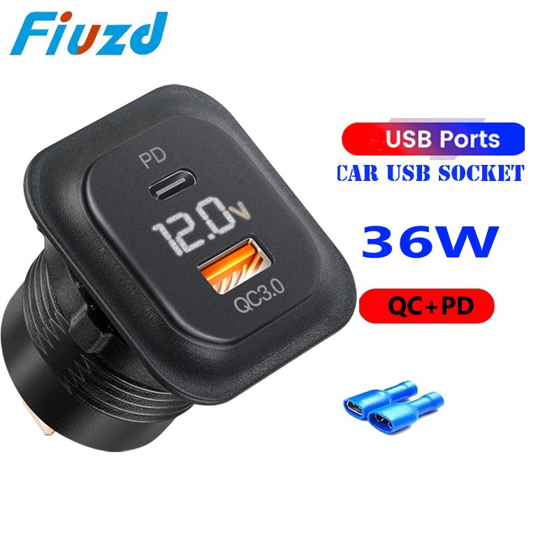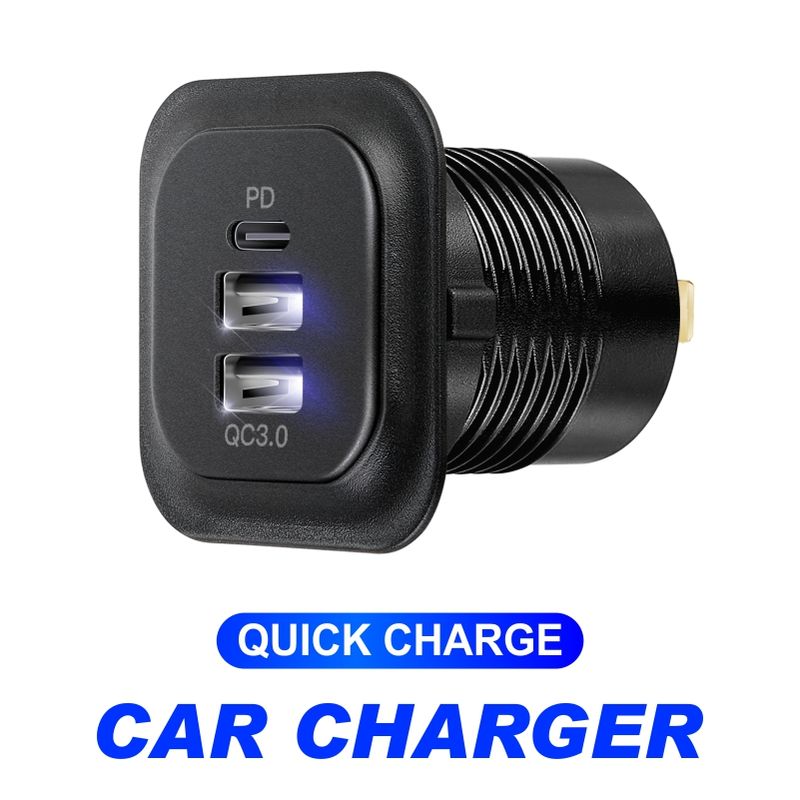 Car Charger Socket PD3.0 & QC3.0 Double USB C Ports with LED Fast Charging 12V/24V For Moto Adapter
