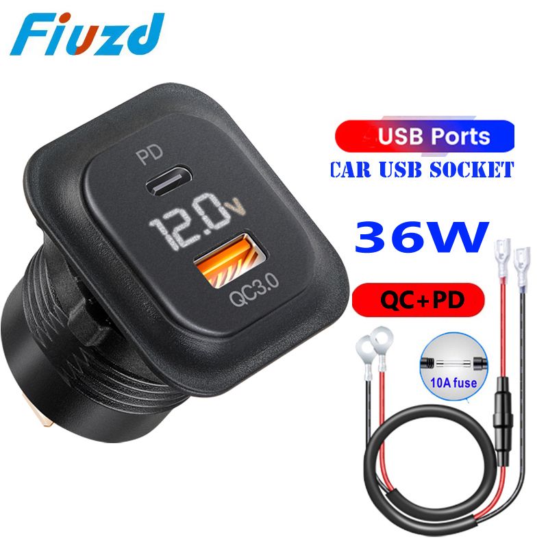 Car Charger Socket PD3.0 & QC3.0 Double USB C Ports with LED Fast Charging 12V/24V For Moto Adapter