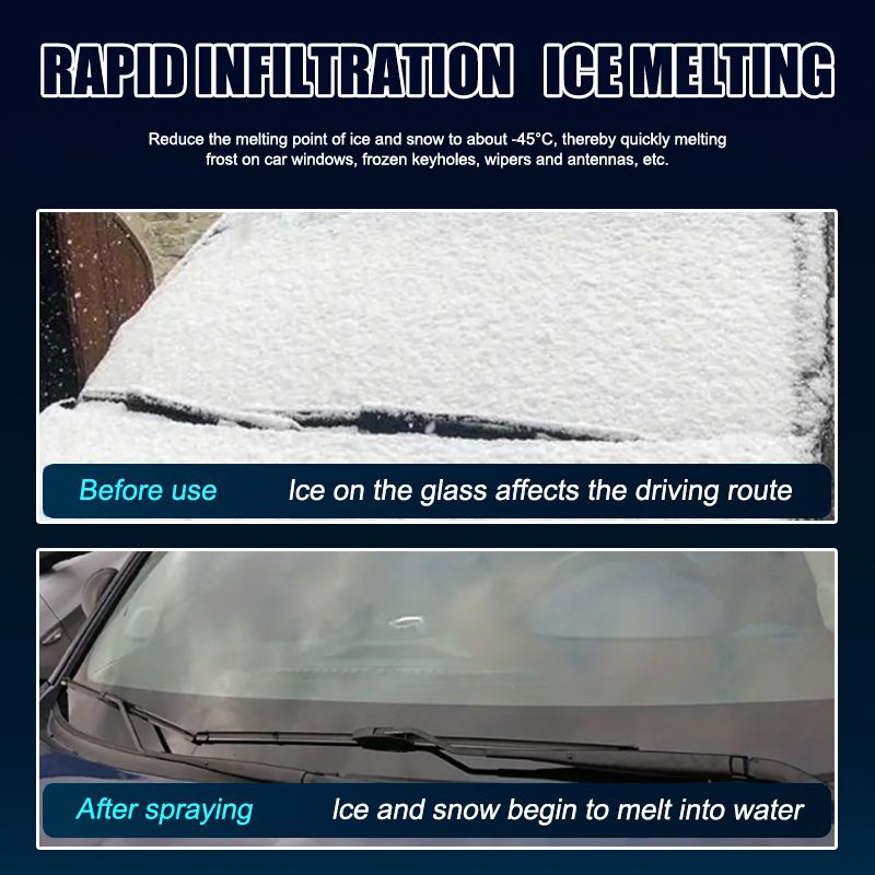 1. Powerful snow melting spray: Say goodbye to cold wind protection with our fast spray. Effectively remove frost and ice, saving you time and energy. Our powerful drugs quickly penetrate the surface without leaving any residue or damage.