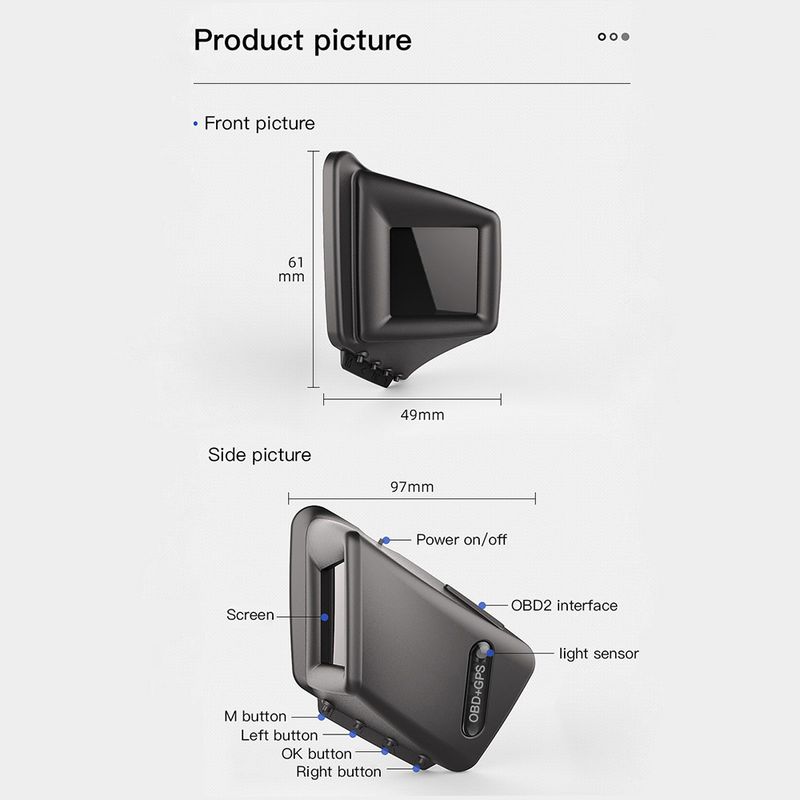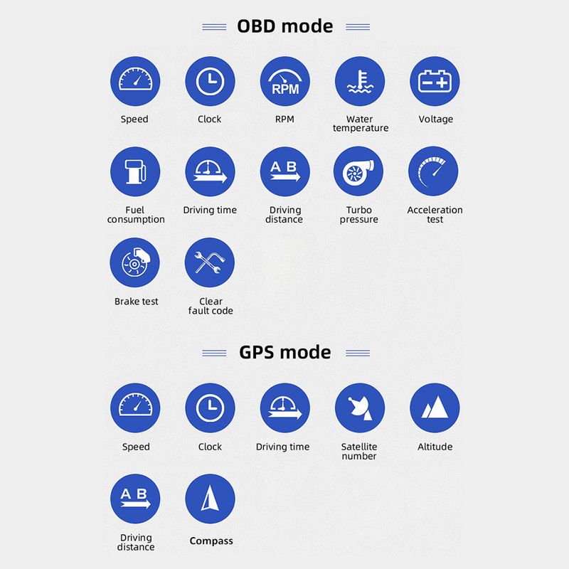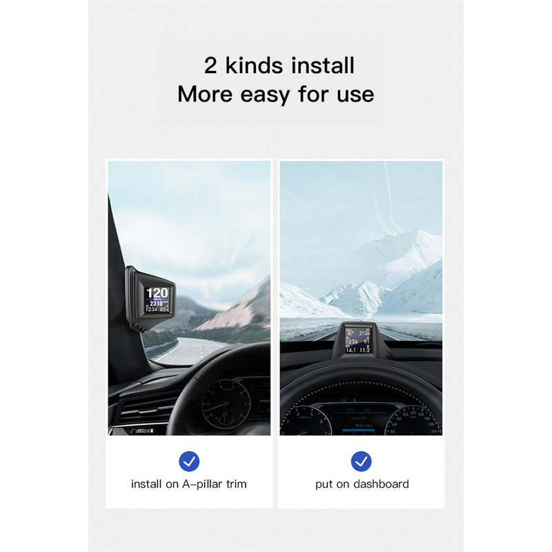 Function: A-pillar installation of OBD+GPS smart HUD LCD code table dual system