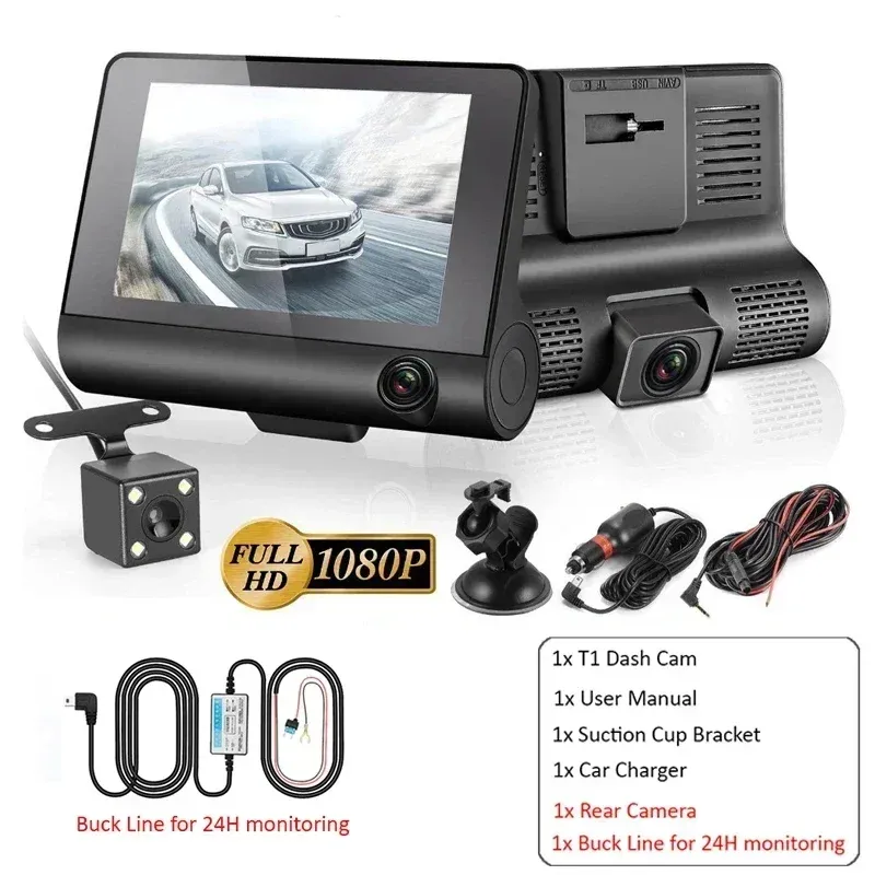 Car DVR 3 Cameras Dash Cam 1080P Video Recorder Black Box 4.0 inch LCD Screen with 170 Degree View car Accessories