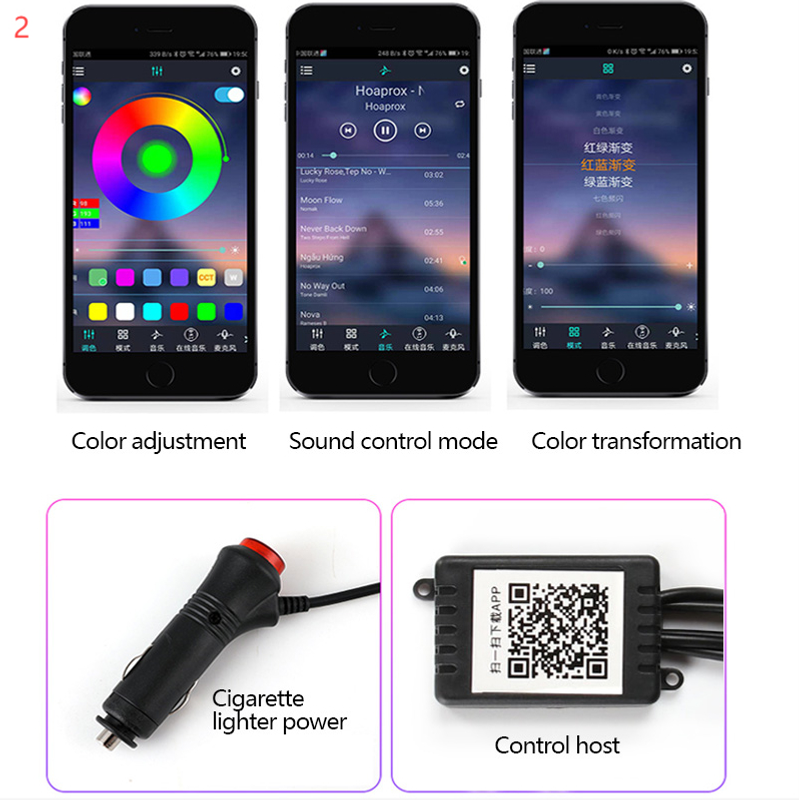 1. RGB mode, most color available, colorful interior car atmosphere light strips, enjoy a leisure and relax drive.