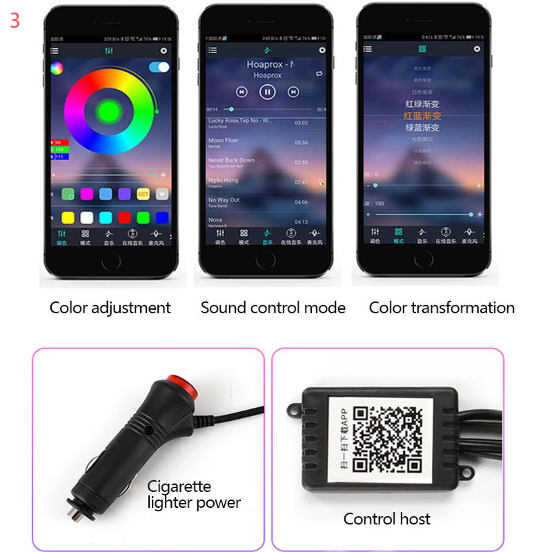 Car Fiber Optic Ambient Light Modified Car Interior Cool Light APP Rhythm Light 3style