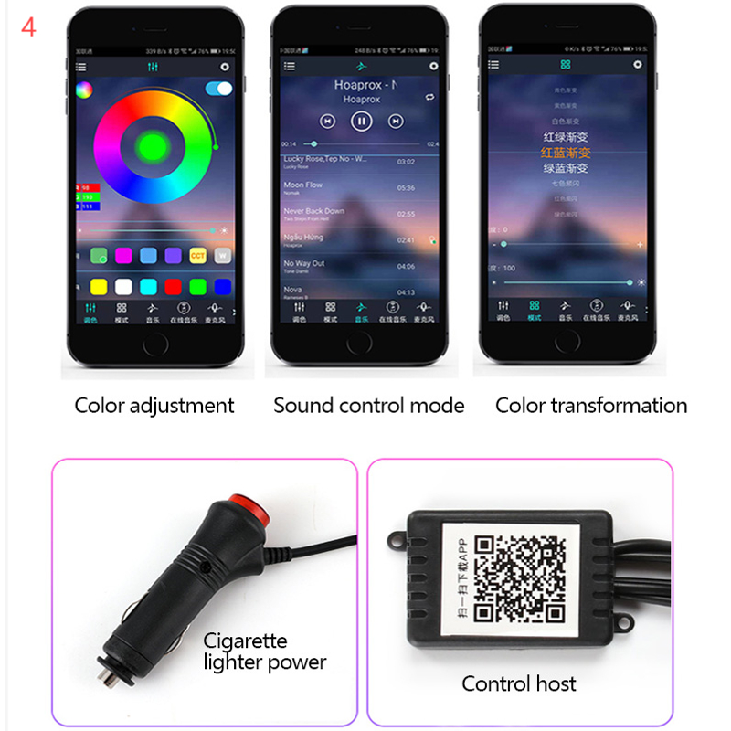 Car Fiber Optic Ambient Light Modified Car Interior Cool Light APP Rhythm Light 4style