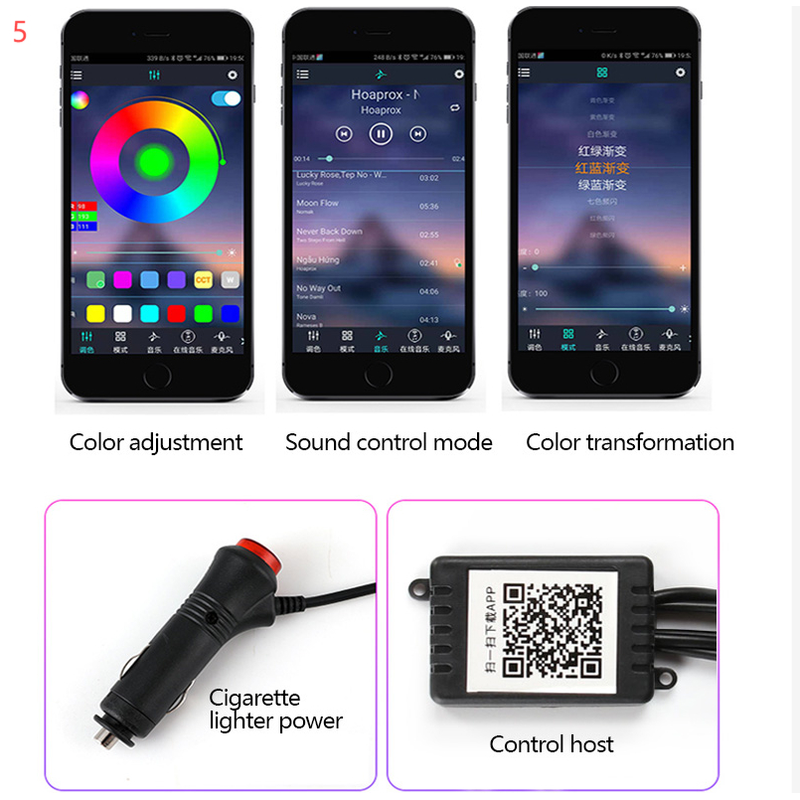 Car Fiber Optic Ambient Light Modified Car Interior Cool Light APP Rhythm Light 5style