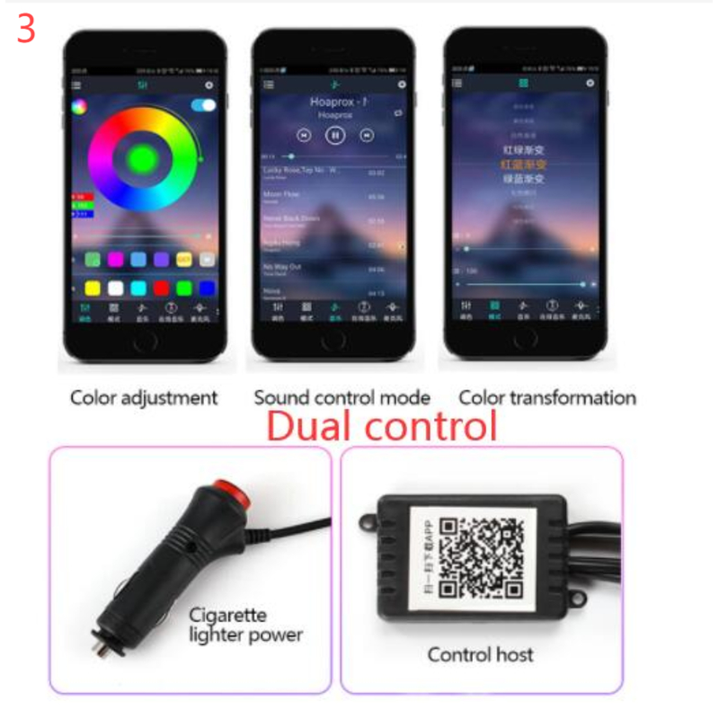 1. RGB mode, most color available, colorful interior car atmosphere light strips, enjoy a leisure and relax drive.