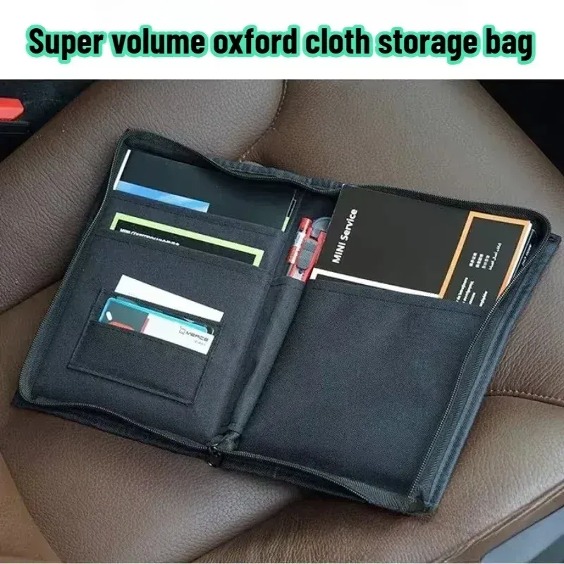Car Glove Box Organizer, Oxford Cloth Document Storage Bag with Multiple Pockets, for Manual Registration Card Insurance