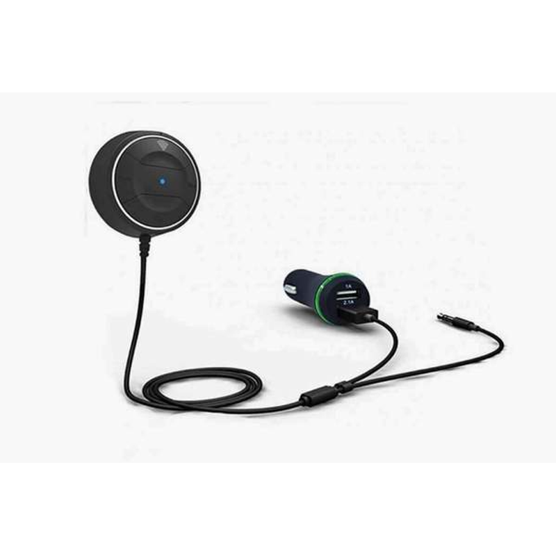 Step 1. Use a 3.5mm audio cable to connect the product to the speaker or to the AUX interface of the car system, and long press the phone answering function button to turn on the product's Bluetooth;