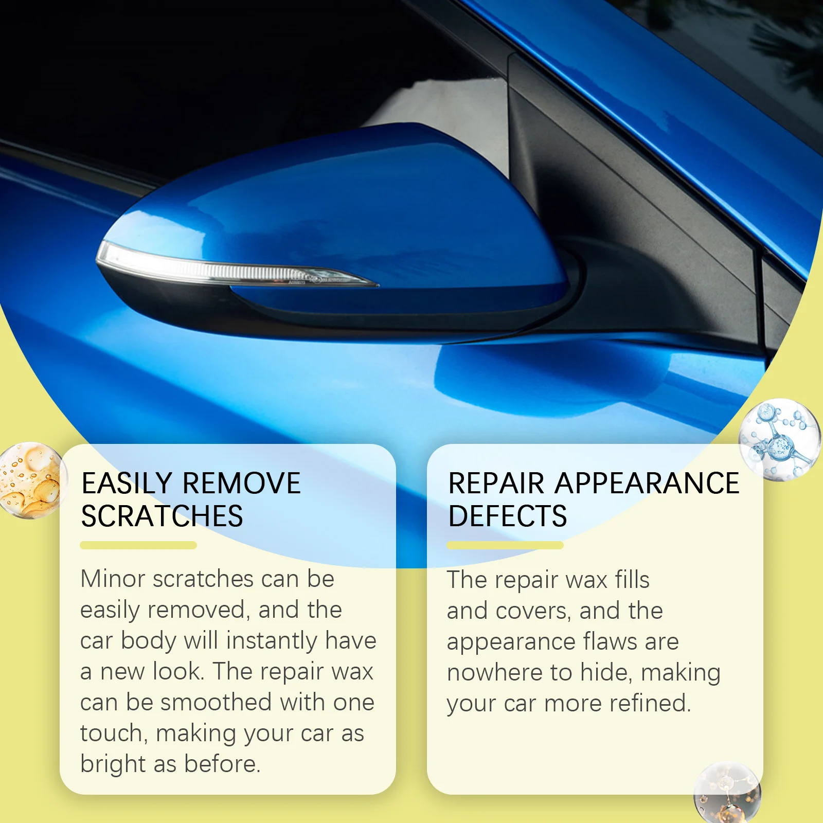 1. Minor scratches can be easily removed, and the car body will instantly have a new look. The repair wax can be smoothed with one touch, making your car as bright as before.