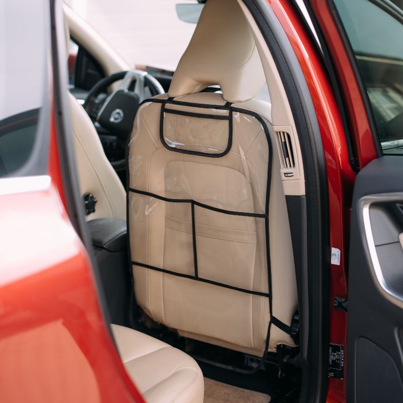 Car Seat Back Kick Protectors, Anti-kick pad for chair back, Protection from Dirt, Mud, scratch resistant with 2 mesh pockets