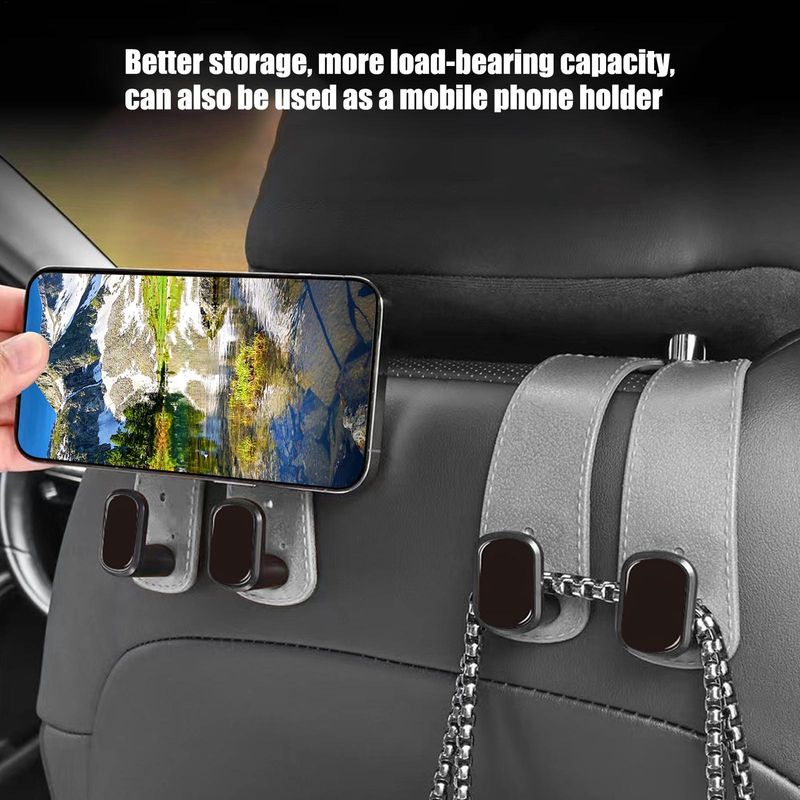 Experience convenience with multifunctional headrest hooks designed to elevate your vehicle interior. These stylish hangers provide compact organization solutions, including phone holder features, while accommodating coats, purses, and umbrellas.