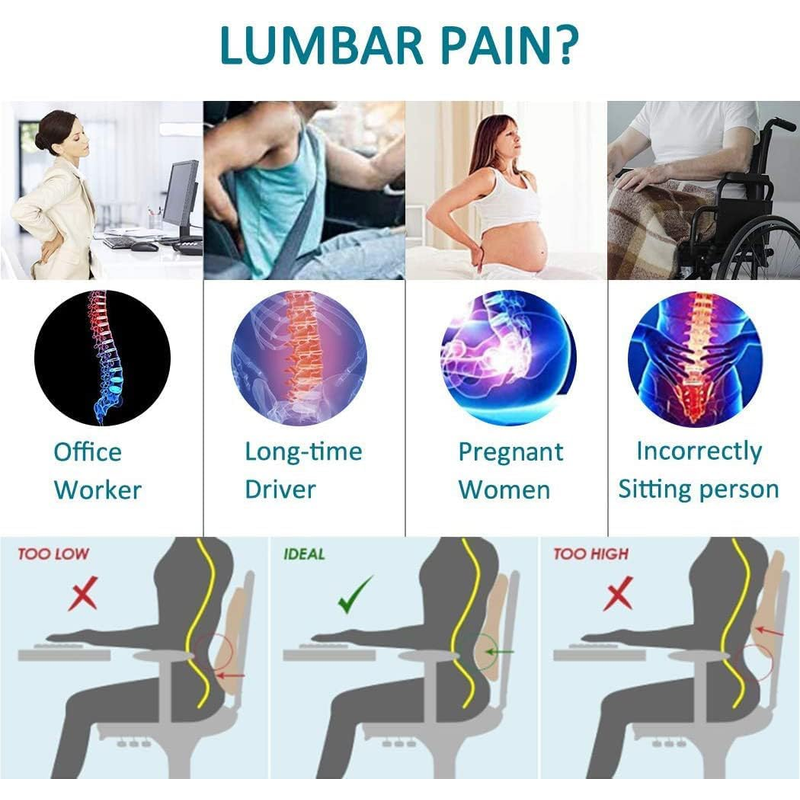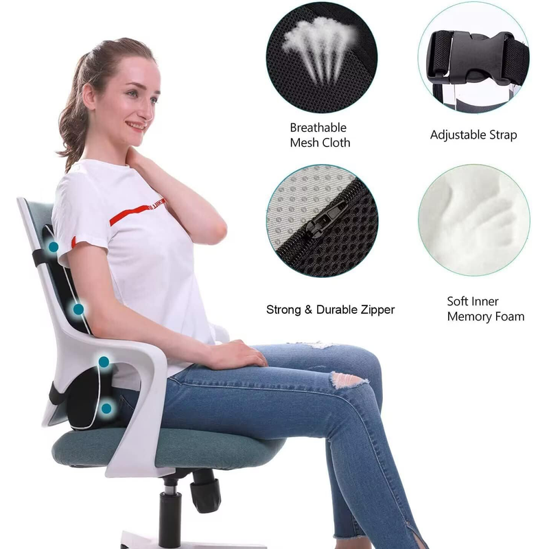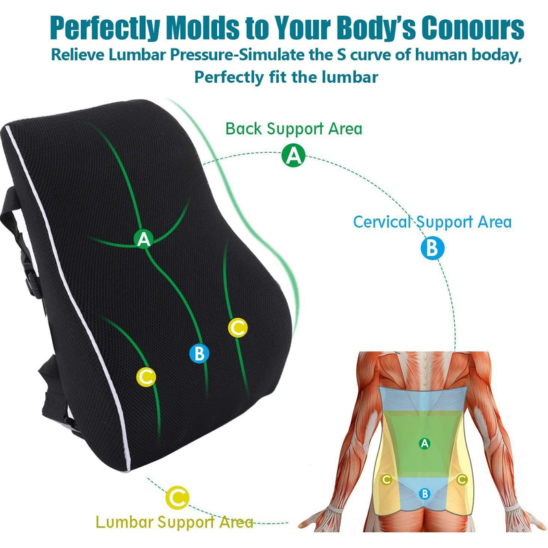 Car Seat Office Chair Back Lumbar Support Car Waist Rest Rebound Memory Foam Cushion Pad Back Lumbar Cushion for Car Driver