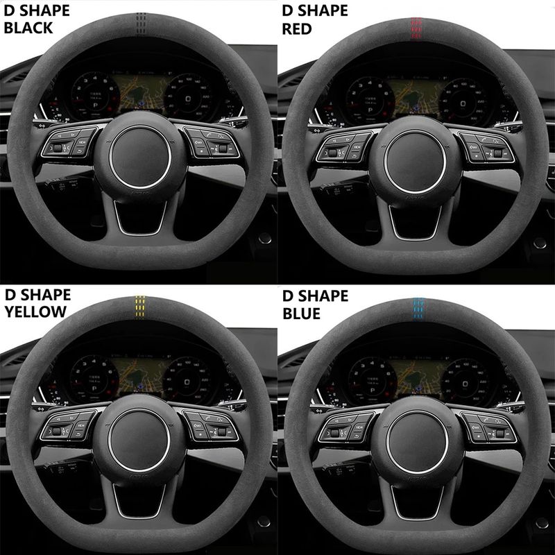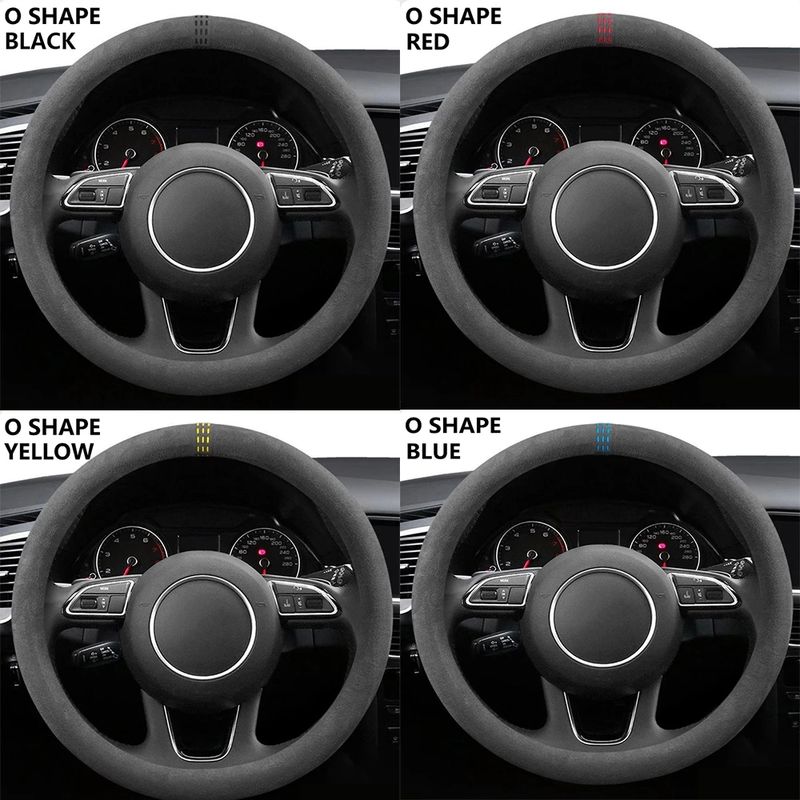 Car Steering Wheel Covers Cowhide Suede Steering Wheel Cover Wrap Universal 37-38cm Breathable Steering Covers Car Accessories