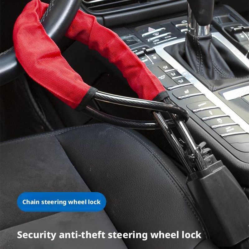 3. Wide Application: The anti-theft seat belt lock can be adjusted max 17" length to lock your steering wheel and seat, fits most cars or SUV.