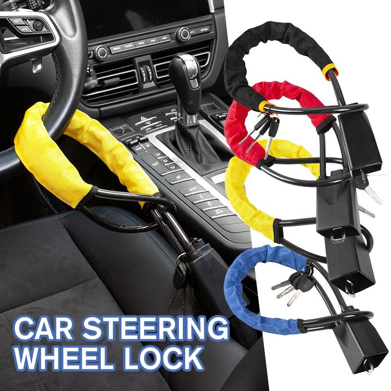 1. Highly Security: The yellow security steering wheel belt lock has sturdy construction with 2 keys. Viewd from outside the vehicle, produces a striking effect to prevent theft.