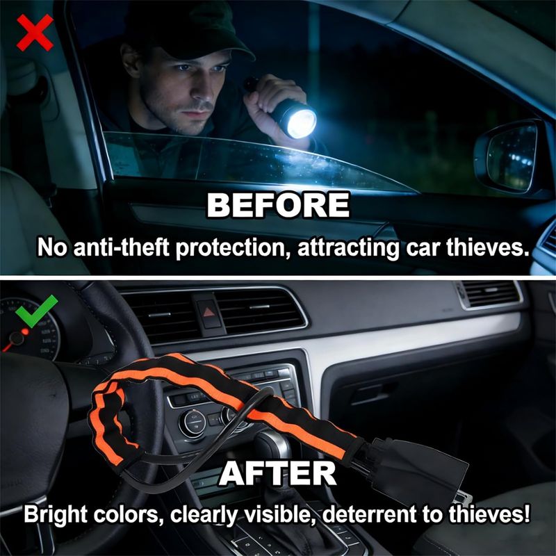 - ๐ก Glow-in-the-Dark Reflective Strip โ Not just a lock, but a warning sign that shines in headlights and low light, making thieves think twice.