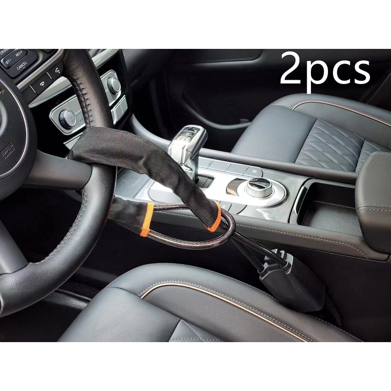 Car Steering Wheel Wire Rope Lock Security Anti-theft Lock Black 2pcs