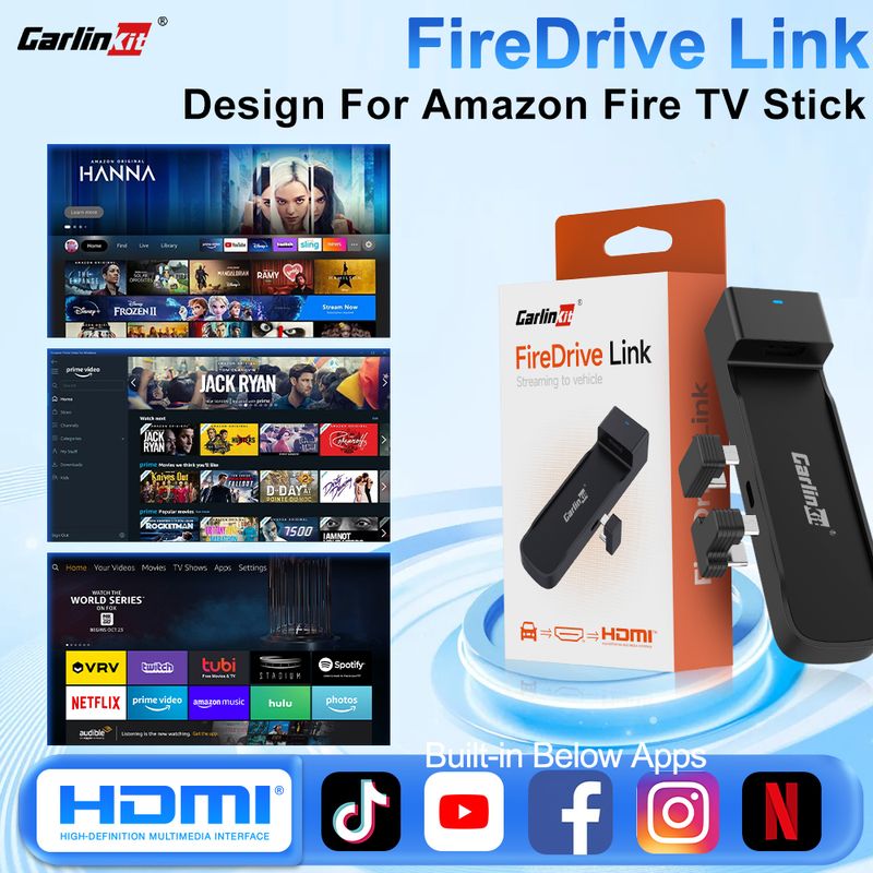 Seamless Wired CarPlay to HDMl Conversion Effortlessly convert your car's wired CarPlay to HDMl with the Carlinkit FireDrive Link,designed exclusively for use with Fire TV Stick. Stream your favorite shows, movies and apps directly on your car's screen-perfect for road trips or keeping passengers entertained.