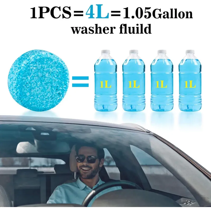 Clean and purify, reduce friction between wipers and glass, and protect them.Instructions for use: This product is suitable for environments above zero degrees Celsius. Open the car hood, find the wiper, add a wiper (if the glass is too dirty, it is recommended to add 2), and wait for 5 minutes before using it normally. A regular piece of water can be exchanged with 4L of water. According to the normal volume of the storage tank, it is a piece of water that can replace traditional glass water and is superior to traditional glass water!