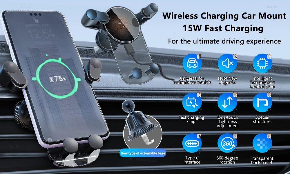 【Case friendly & flexible angle adjustment】Our hacrin car phone wireless charge holder can easily adapt to the phone with the phone case, allowing you to enjoy a convenient charging experience. (Please note that metal cases, magnets, credit cards, grips and brackets may interfere with charging. ) 360 rotating sphere allows you to adjust the angle according to your personal preference, which is convenient for obtaining the best view and safe driving.