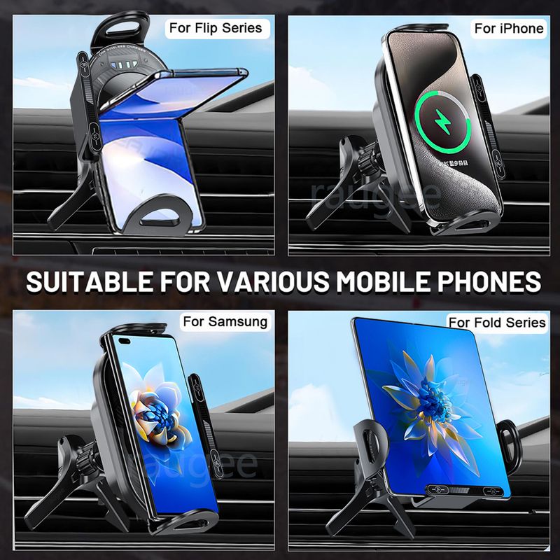 Car Wireless Charger For iPhone Samsung Galaxy Z Fold 7 6 Flip 3 4 Air Vent Car Cellphone Holder Fold Screen Phone Fast Charger