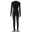 Cardigan Double Open Long-sleeve Zipper Top And Trousers Casual Suit Black L