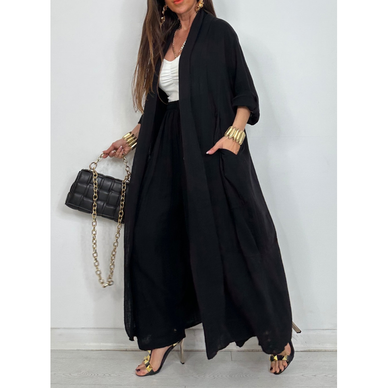 Cardigan Long Shirt Fashion Solid Color Casual Suit Black XXXL