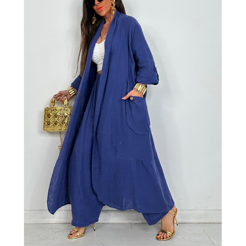 Cardigan Long Shirt Fashion Solid Color Casual Suit Blue XXL