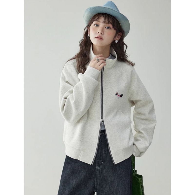 Cardigan Zipper Short Coat Loose All-matching Light Gray S