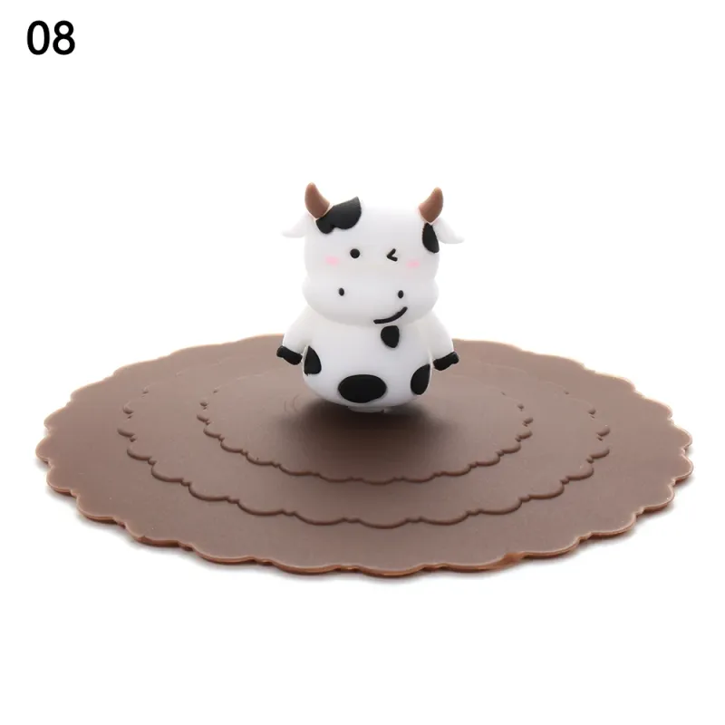 Cartoon 10cm Cute Silicone Cup Cover Heat-resistant Leak Proof Sealed Lids Cap Dustproof Cup Cover Suction Cup Cover Tea Lids