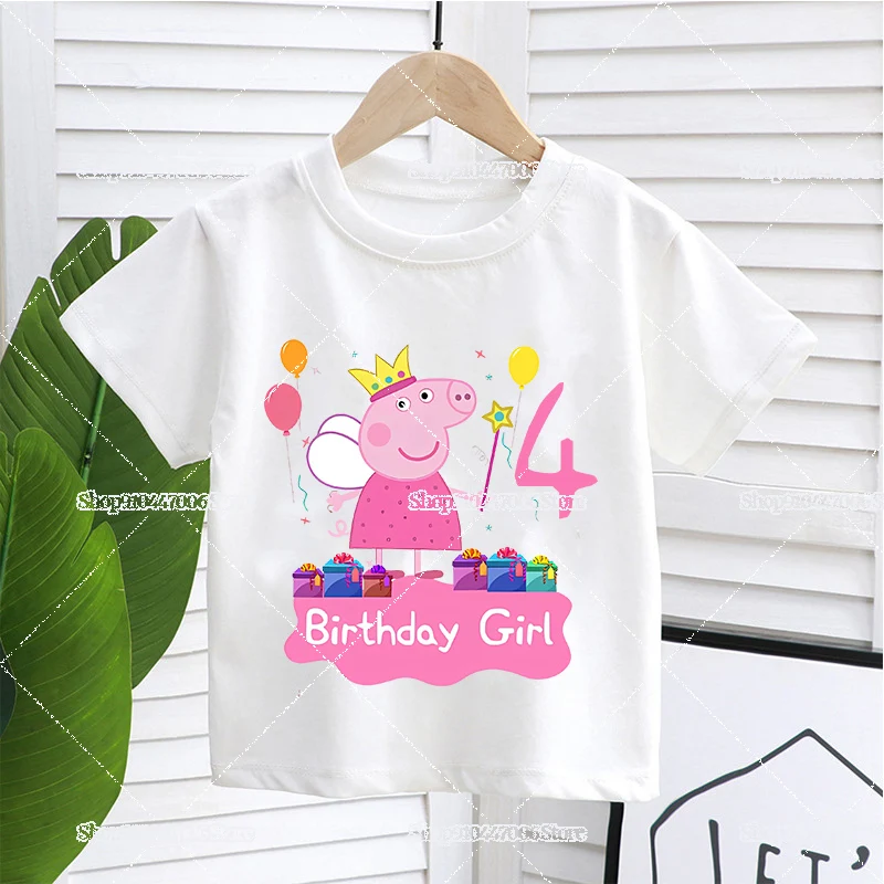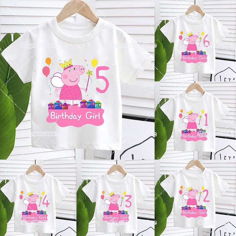 Cartoon Anime Peppa Pig Birthday Number 1-9 Print T-shirts for Kids Girls Clothes Summer Round Neck Tee Tops Boutique Outfits